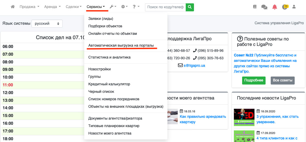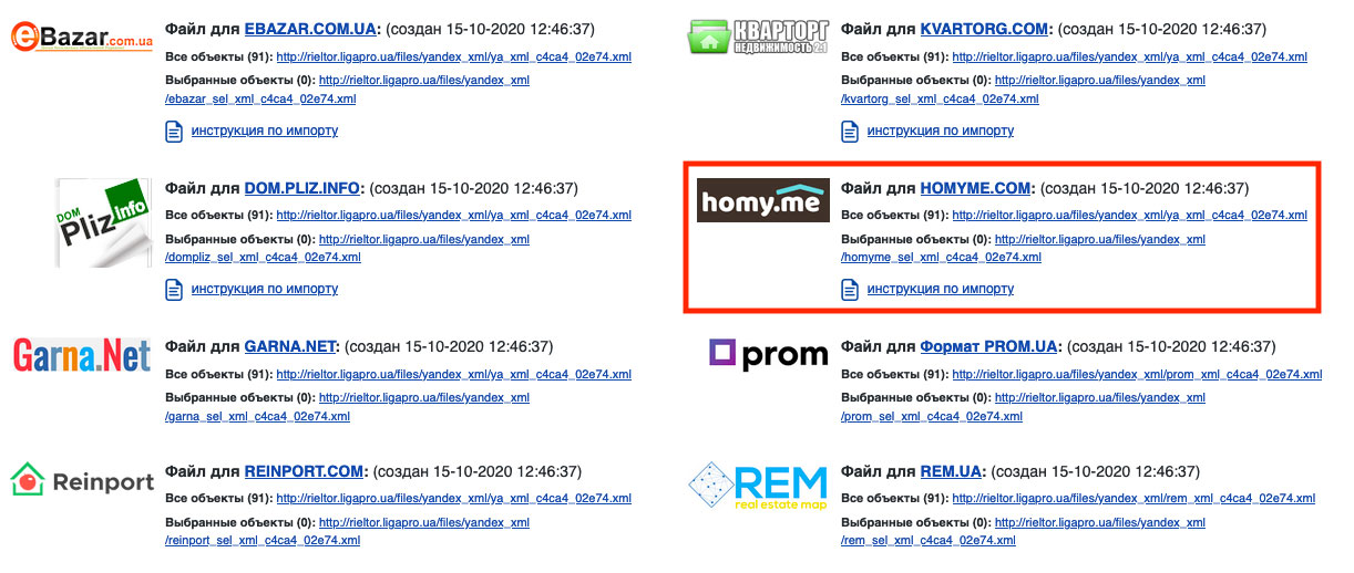 В системе ЛигаПро существует возможность автоматической выгрузки объектов на портал homyme.com.