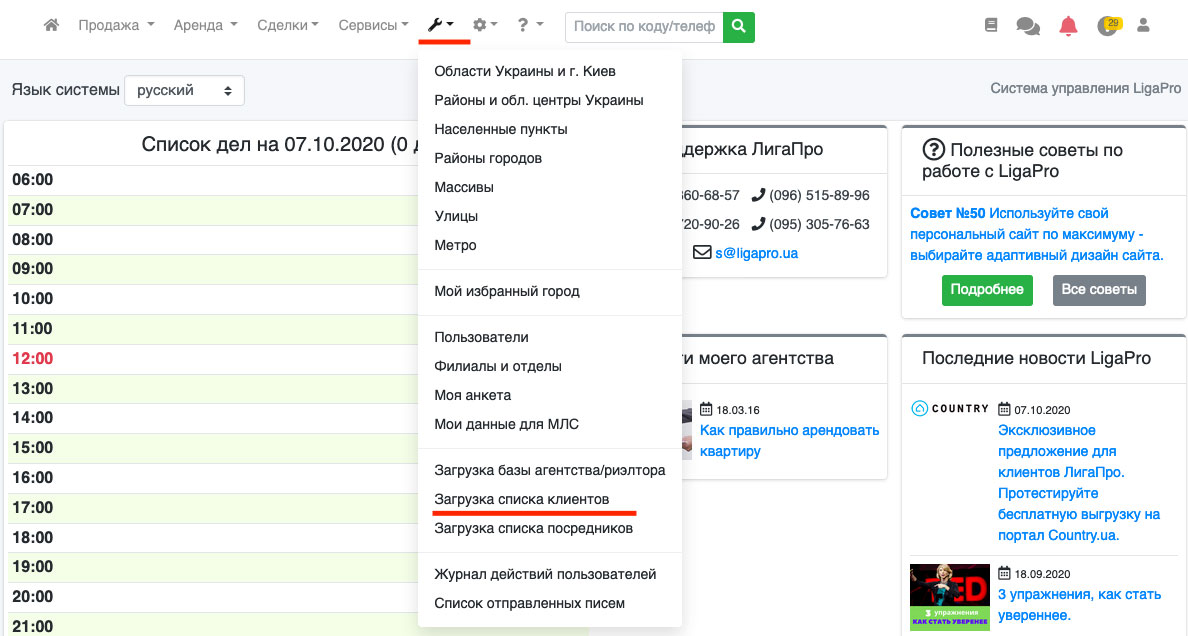 Для быстрой загрузки базы клиентов Вы можете воспользоваться системой автоматической загрузки базы клиентов. Для этого зайдите в пункт «Управление - Загрузка списка клиентов» (Рис. 820).