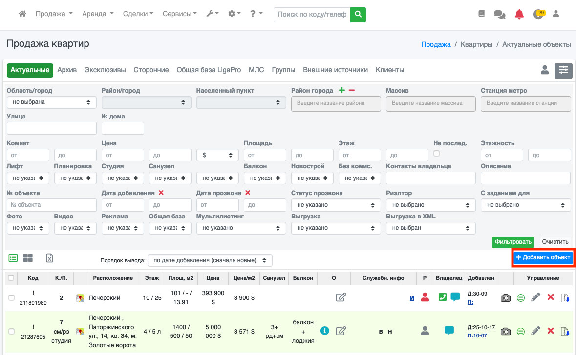 Теперь перейдите в рубрику продажа квартир и нажмите кнопку добавить квартиру (Рис. 871).