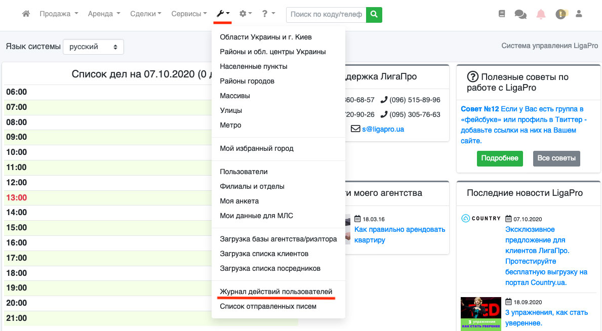 Чтобы восстановить объект перейдите в пункт «Управление – журнал действий пользователей» (Рис. 873).