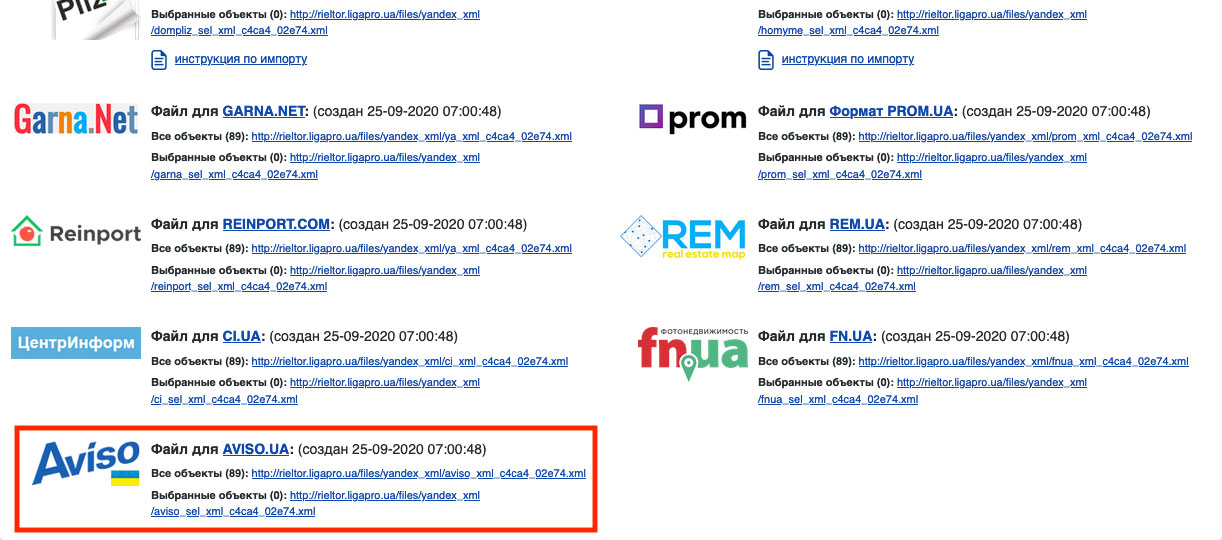 В системе ЛигаПро существует возможность автоматической выгрузки объектов на портал aviso.ua.