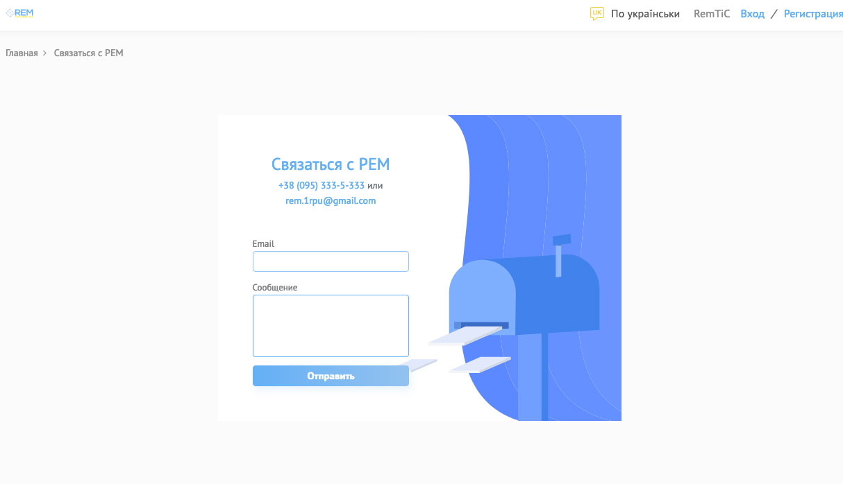 - Перейти на сайт rem.ua и внизу найти ссылку «Связаться с РЕМ» (Рис. 922).