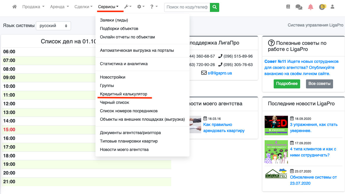 В системе ЛигаПро есть функция «кредитный калькулятор», который доступен в разделе «Сервисы- Кредитный калькулятор» (Рис. 127).