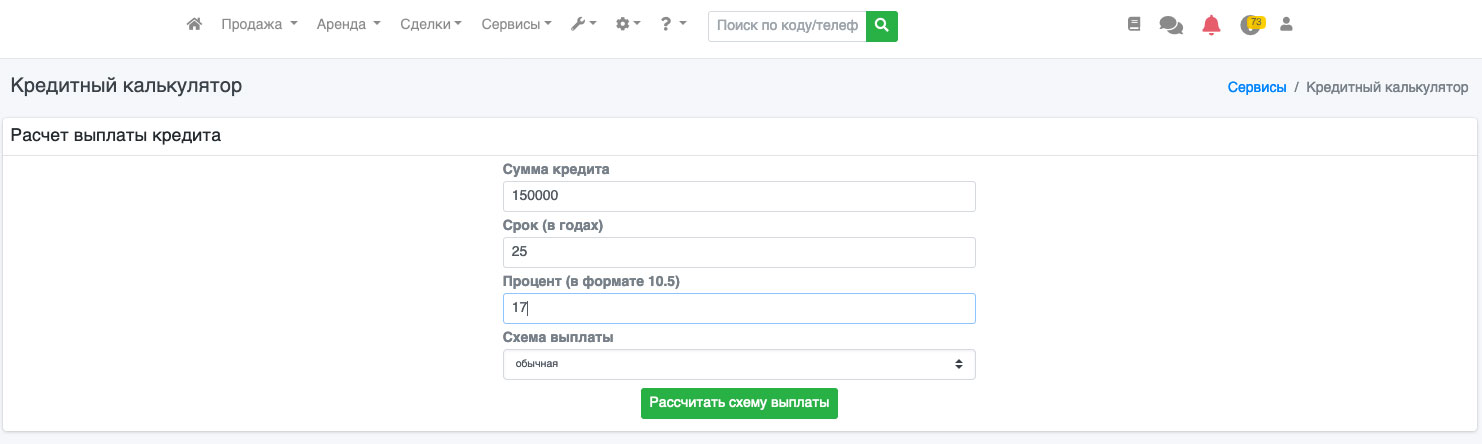 На открывшейся странице у Вас отобразится кредитный калькулятор (Рис. 128).