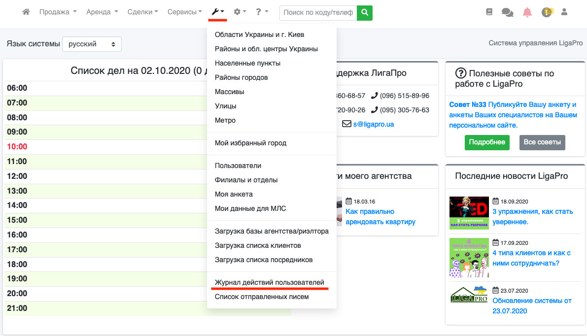 Перейдите в пункт «Управление – Журнал действий пользователей» (Рис. 153).