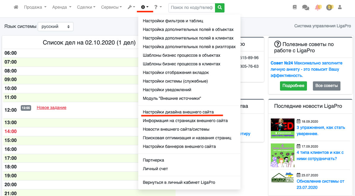 В системе ЛигаПро существует несколько шаблонов дизайна Вашего персонального сайта. Чтобы изменить дизайн сайта, зайдите в пункт меню «Настройки - Настройки дизайна внешнего сайта» (Рис. 194).