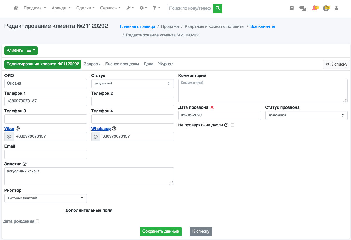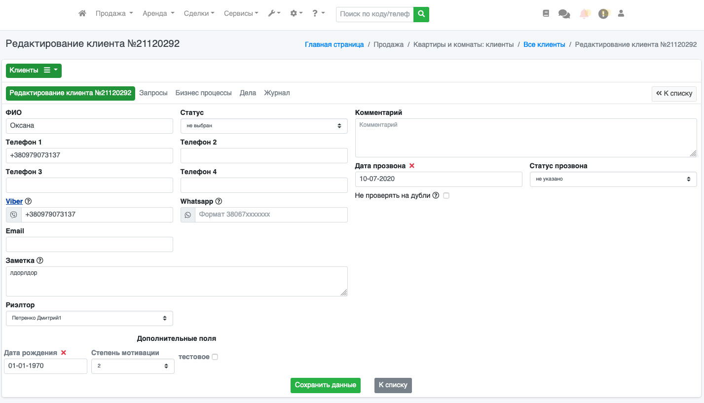 У Вас откроется форма редактирования клиента (Рис. 245).