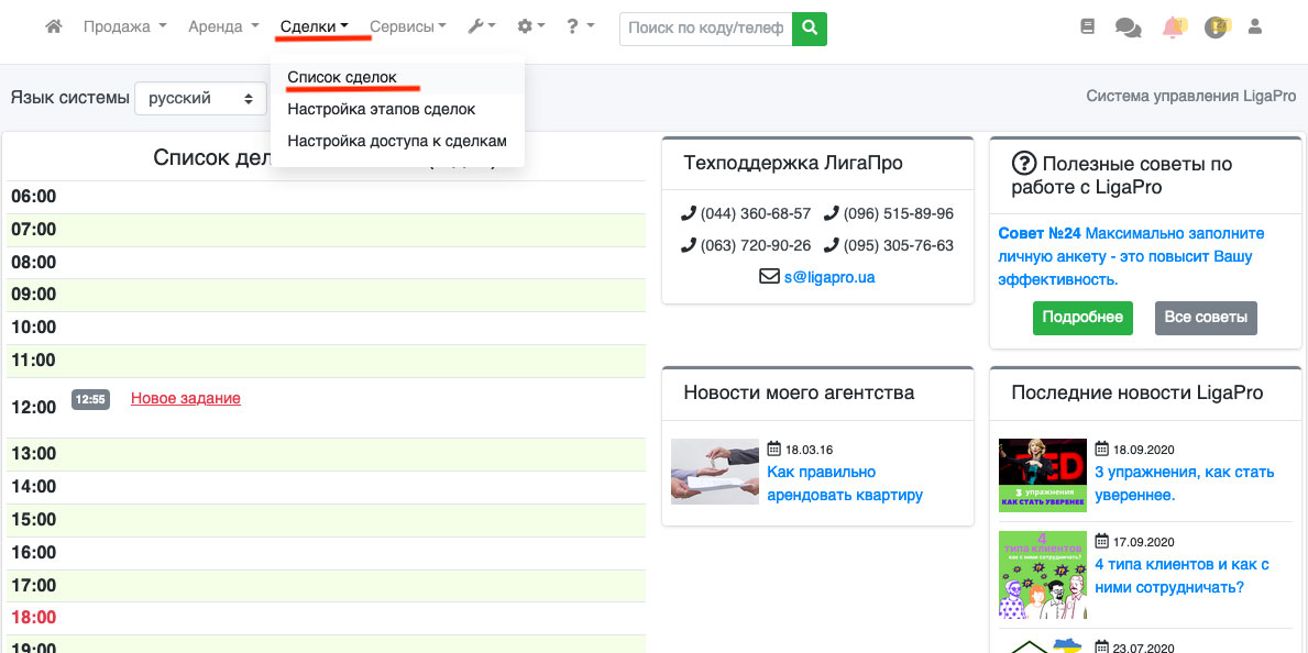 В системе ЛигаПро существует возможность ведения сделок, для этого зайдите в пункт «Сделки - Список сделок». Обращаем Ваше внимание, что доступ к сделкам имеет только администратор и пользователи, которым были даны соответствующие права (Рис. 277).